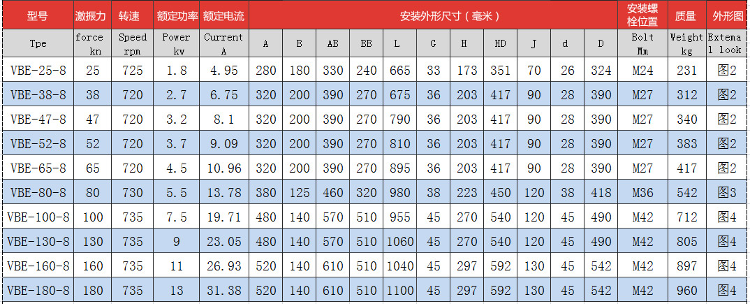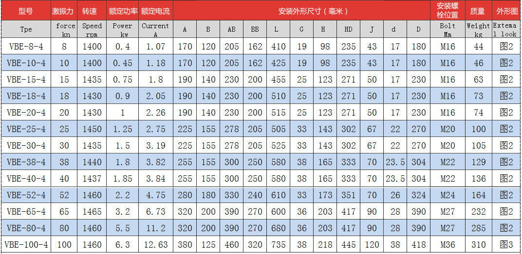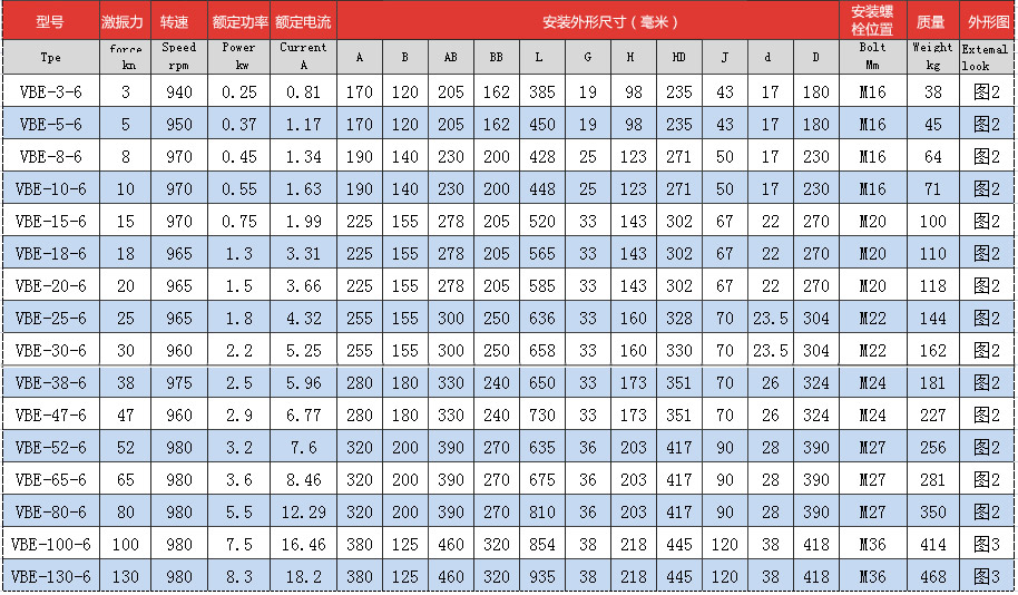 欣佳宏VBE振動(dòng)電機(jī)偏心塊易調(diào)節(jié),多電壓,功率可選。 欣佳宏VBE出口大型振動(dòng)馬達(dá)采用耐高溫品牌純銅漆包線,全銅繞組,定子真空浸漆,保證絕緣等級。 欣佳宏VBE礦山專用震動(dòng)電機(jī)采用特厚球墨鑄鐵外殼、散熱快、溫升低、耐震。 欣佳宏VBE振動(dòng)電機(jī)機(jī)殼為精密鑄件,端蓋邊緣加有o型密封圈、全封閉結(jié)構(gòu)設(shè)計(jì),最佳防塵防潮功能。 欣佳宏VBE振動(dòng)馬達(dá)采用抗振專用電源線出線防護(hù)套、防電纜線長時(shí)間振動(dòng)破壞。 固定澆鑄的接線盒使VBE振動(dòng)電機(jī)具有較強(qiáng)的防水、絕緣、安全性能。 欣佳宏VBE系列震動(dòng)電機(jī)為出口大型振動(dòng)電機(jī)的代表,上市以來深受國內(nèi)外客戶的一致好評; | ![]() |
